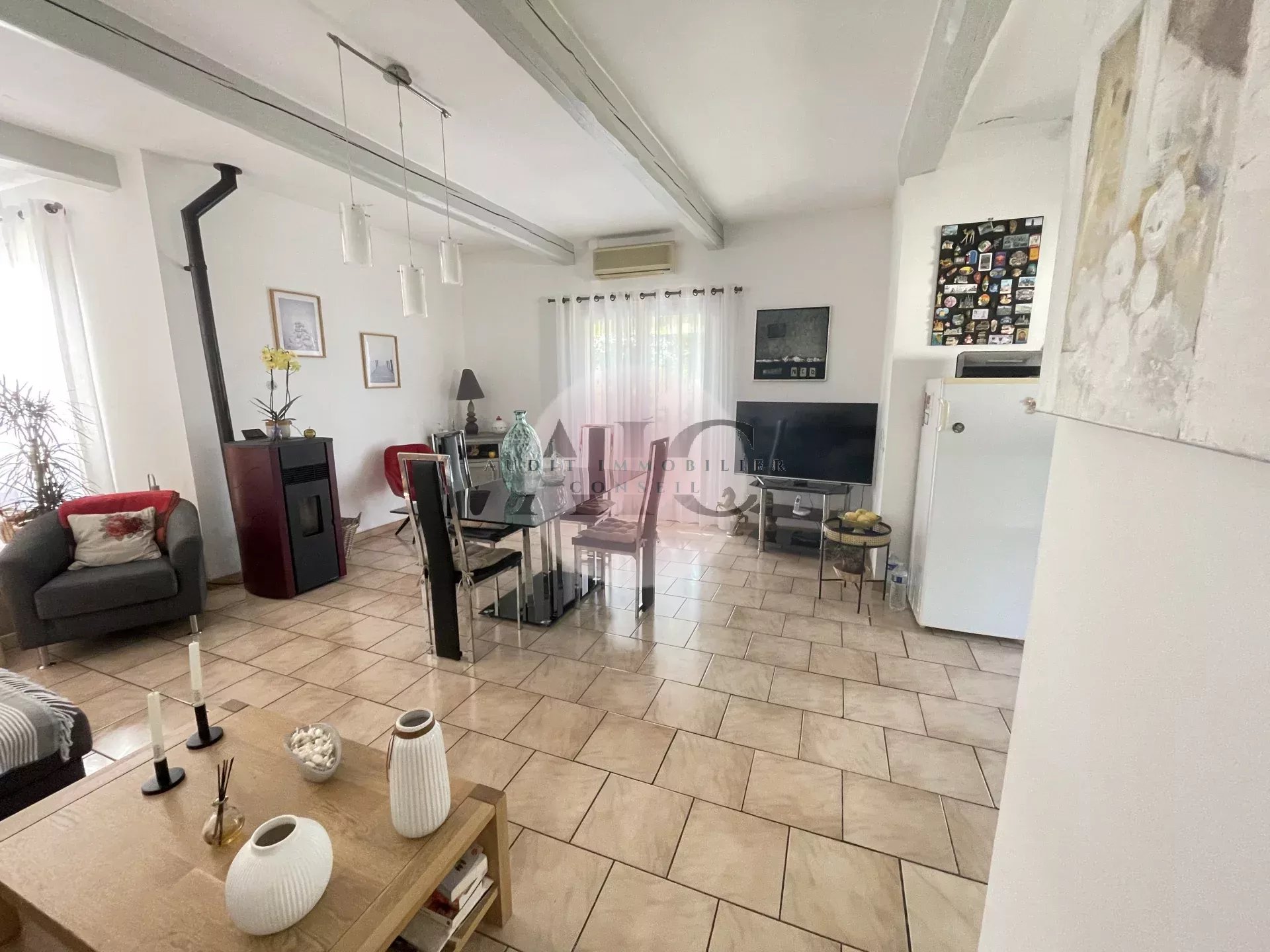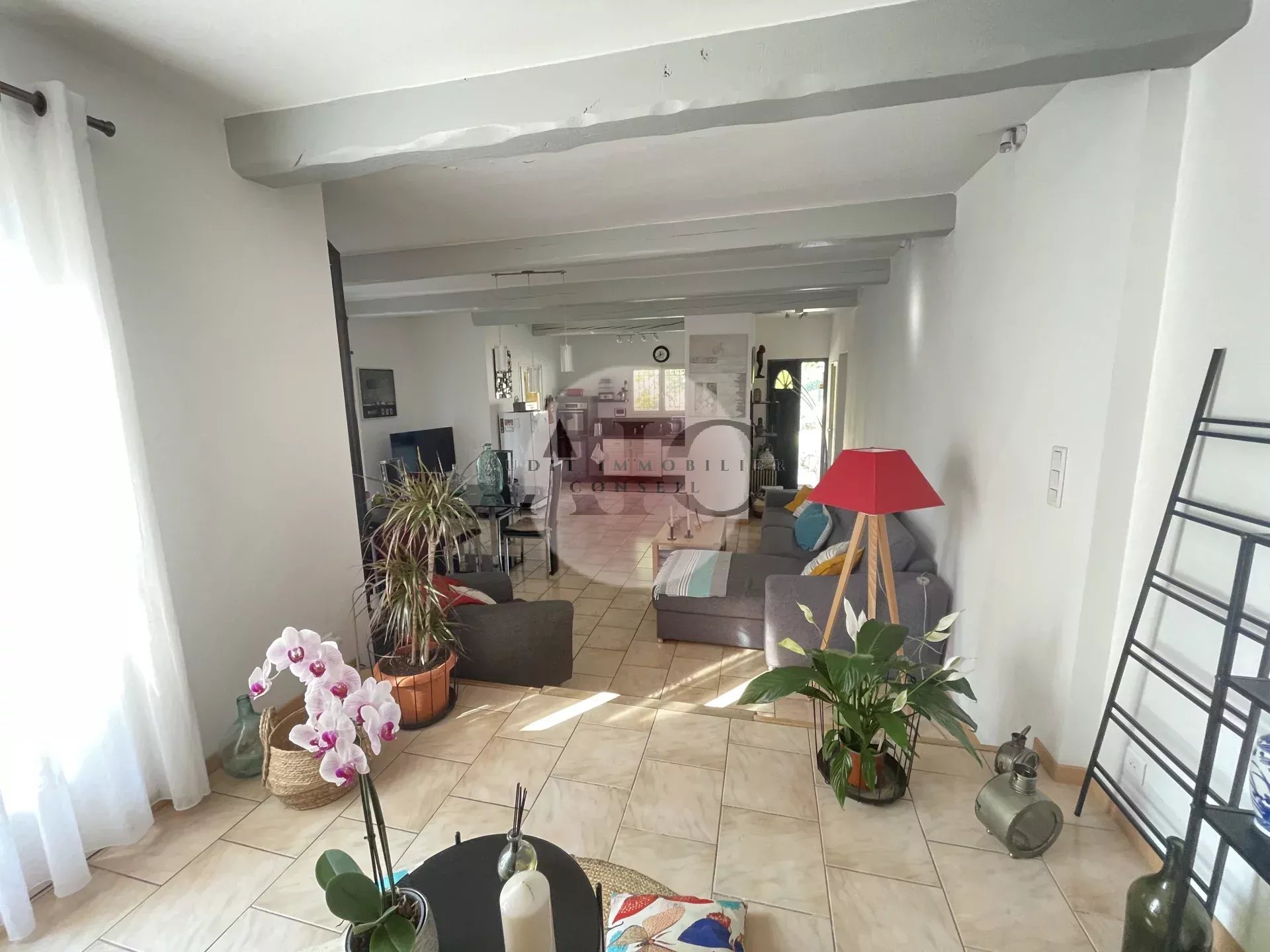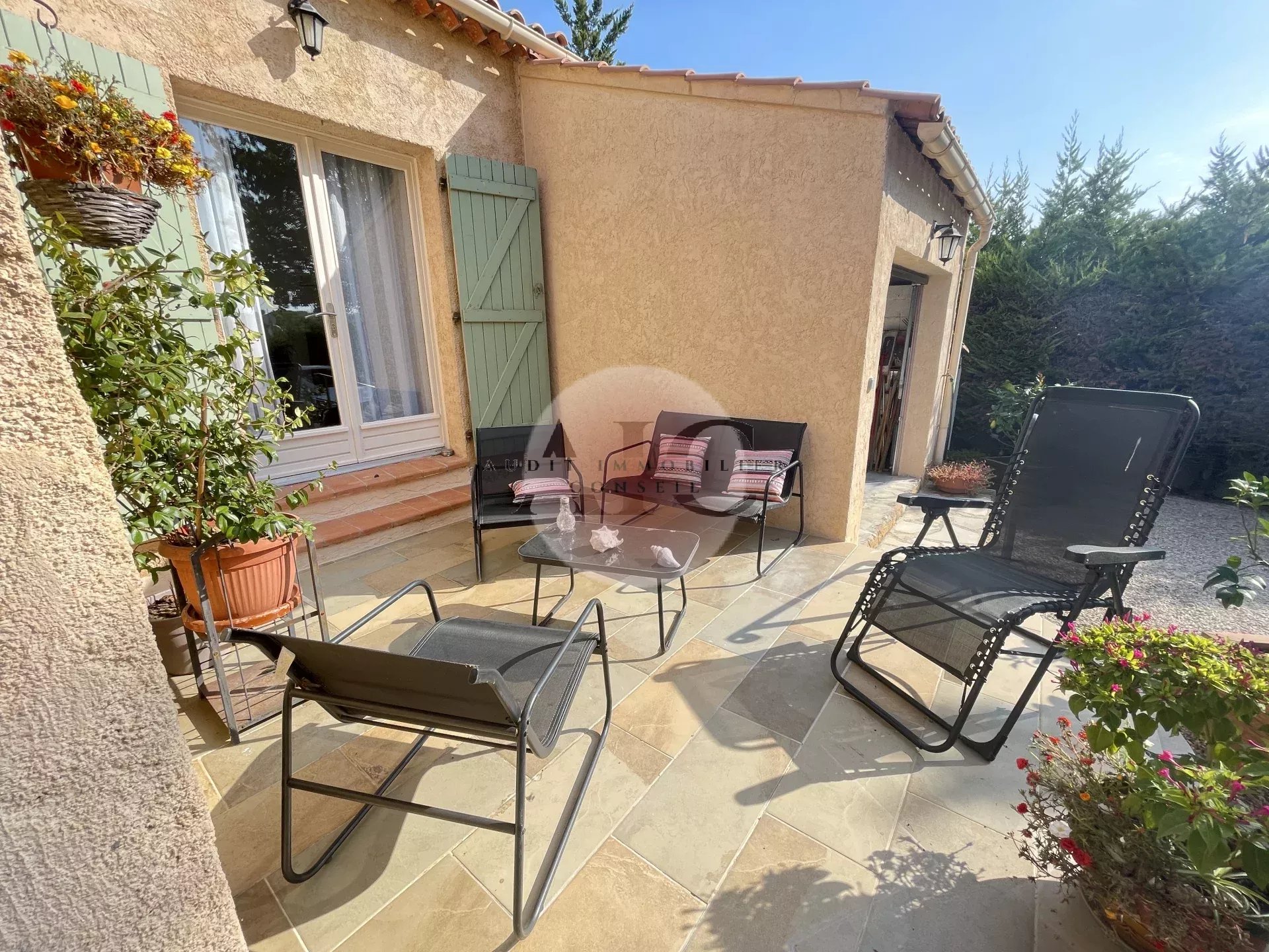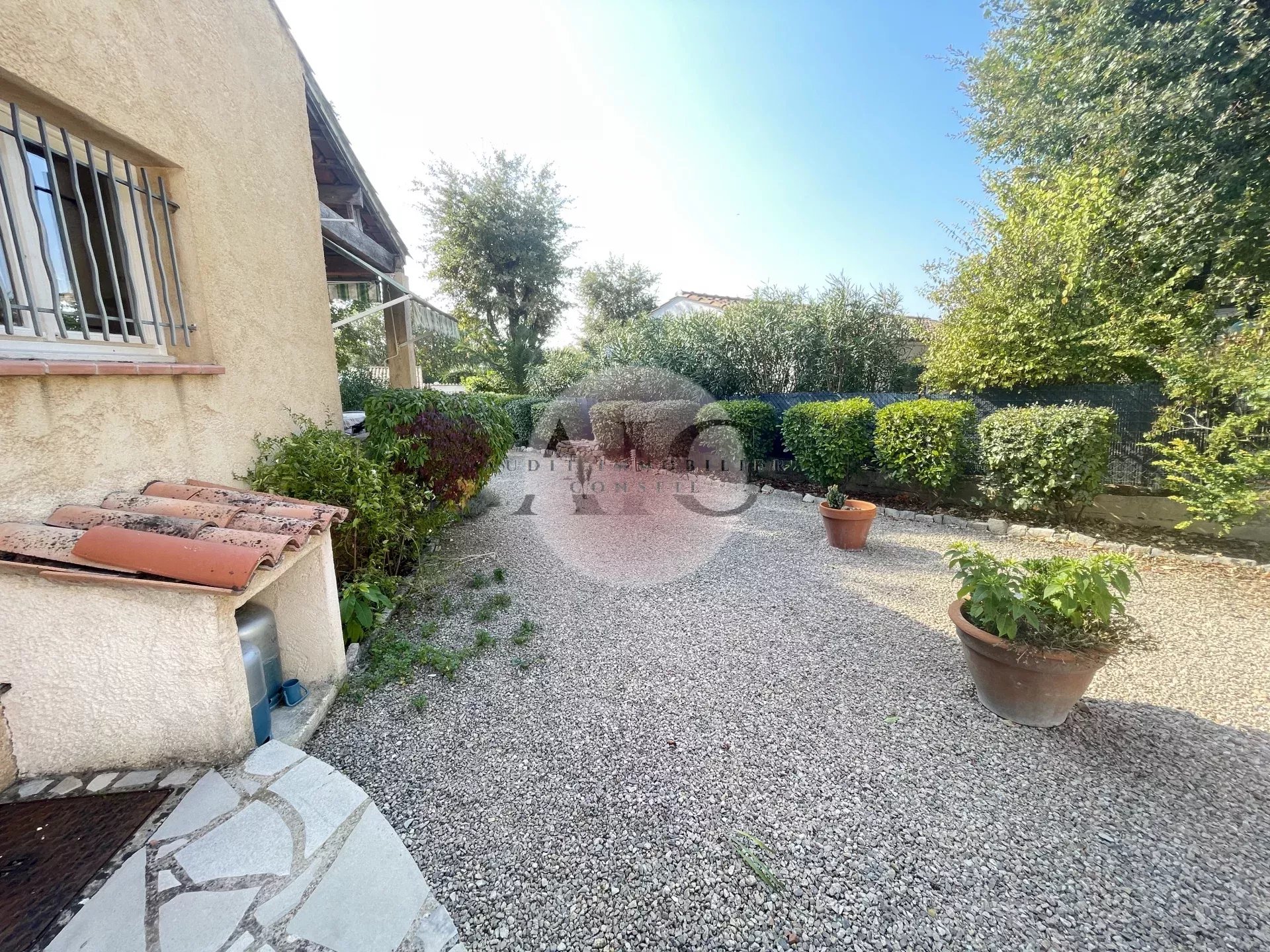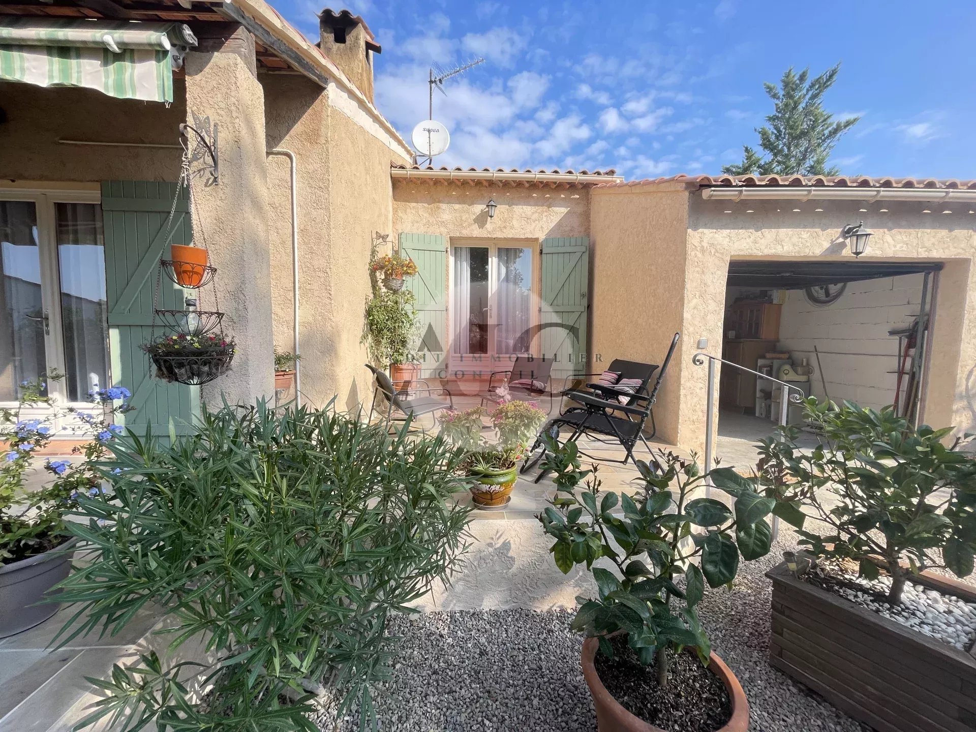 Ref. 1303 - A vendre charmante villa individuelle 3 pièces 84m² avec garage sur terrai 598m². Cette villa vous séduira par son exposition plein SUD et son jardin clos, paysagé, entretenu avec beaucoup de soin et de goût. La maison se compose d'un petit hall avec toilettes invités, un espace de vie lumineux comprenant séjour, salle à manger et cuisine américaine entièrement équipée. Une terrasse partiellement couverte, idéale pour profiter des repas en extérieur, un petit salon ouvert sur le jardin et une autre petite terrasse; En demi niveaux vous avez accès à deux chambres avec placards aménagés, une salle d'eau moderne avec douche à l'italienne; Le garage attenant comprend un espace buanderie aménagé; L'extérieur offre un beau terrain de 598m² soigneusement arrangé et parfaitement entretenu. Une villa clé en main, lumineuse, fonctionnelle et décorée avec gout.