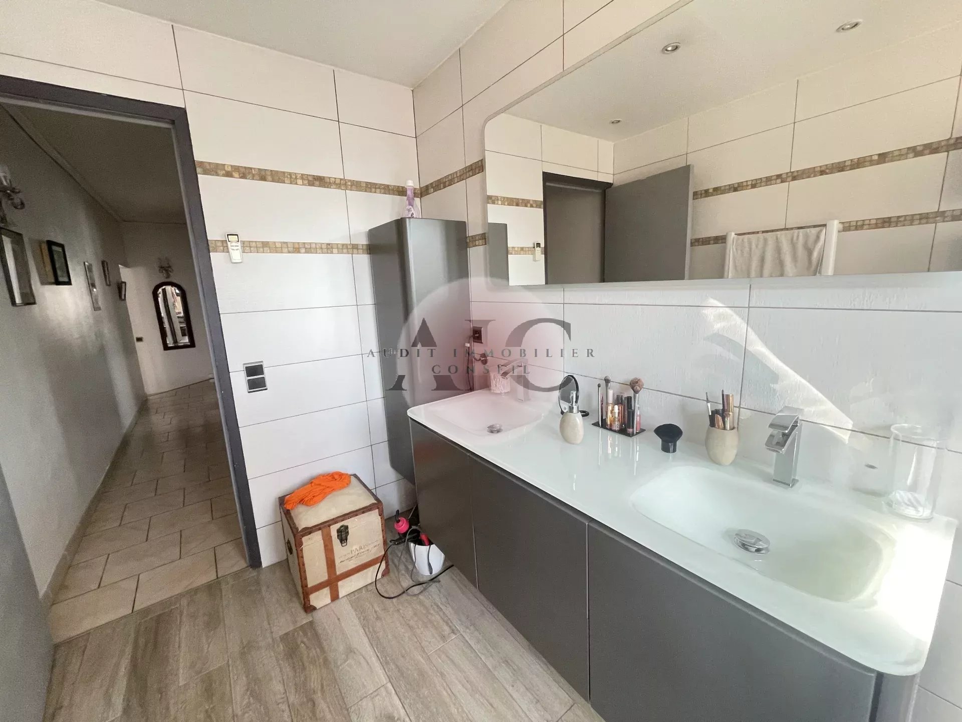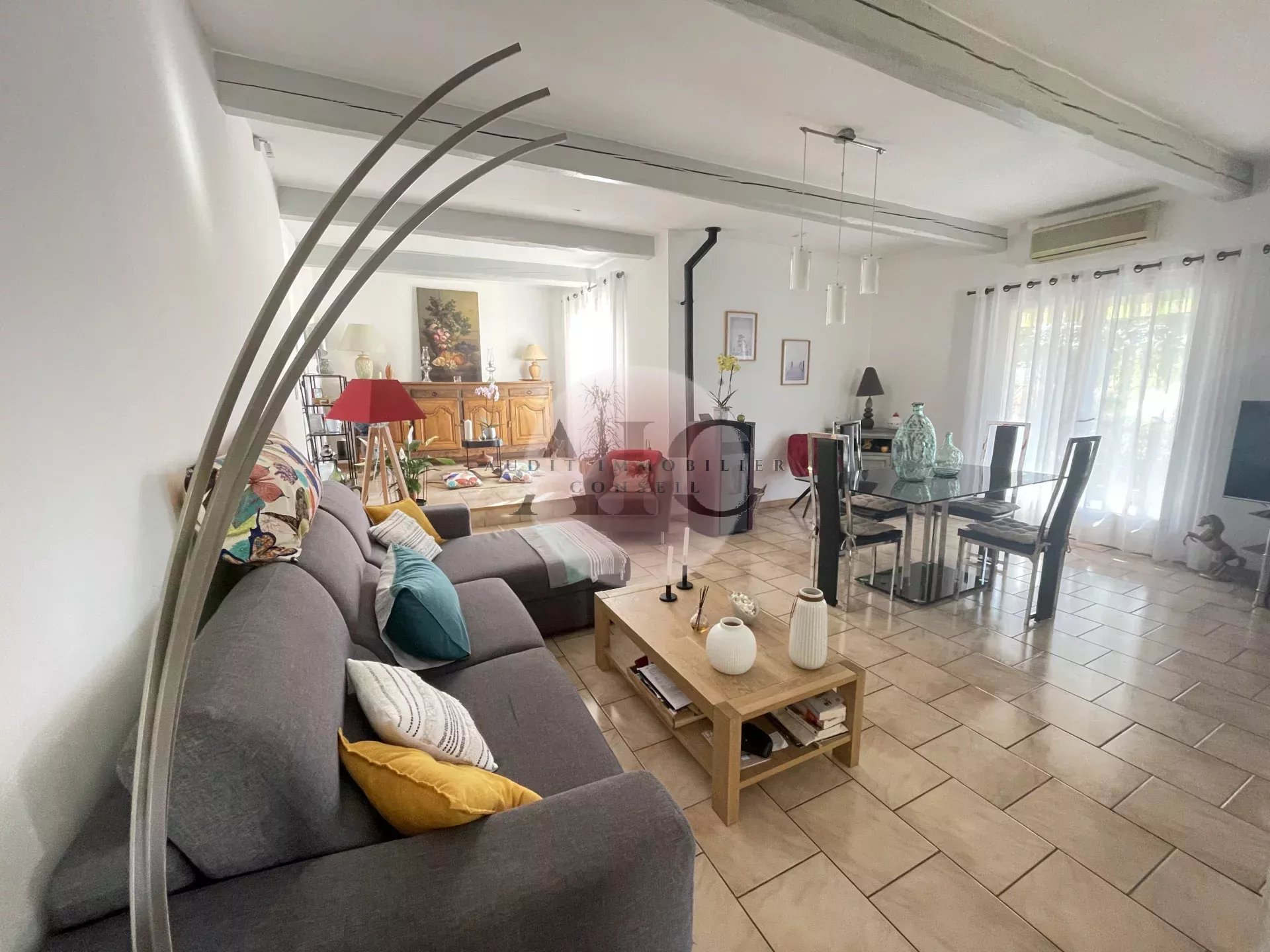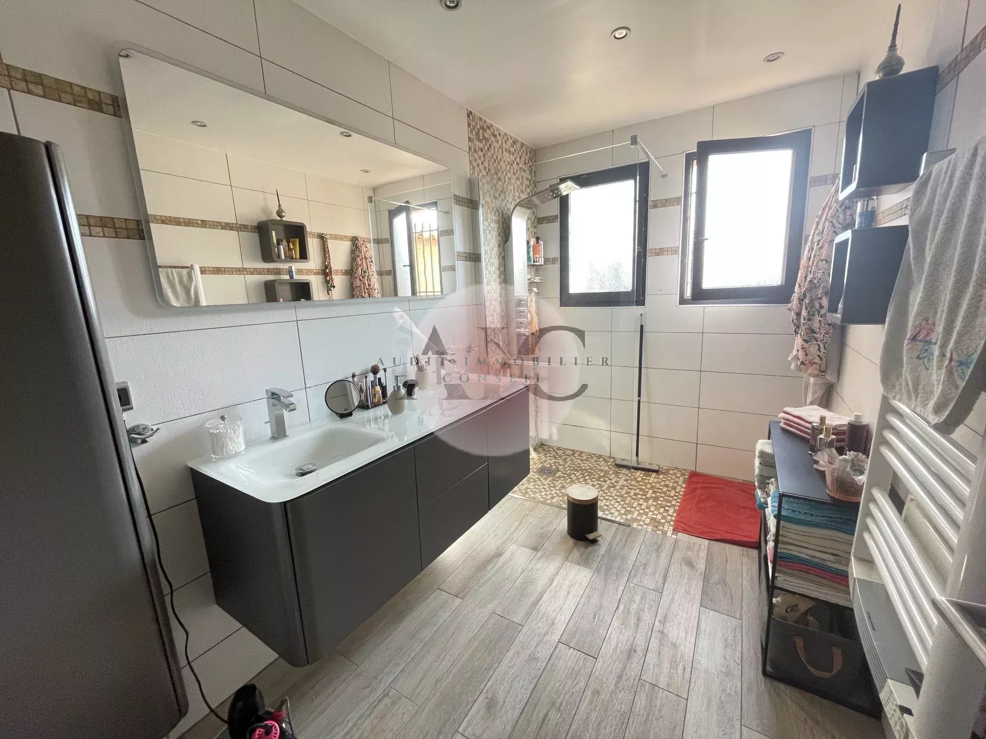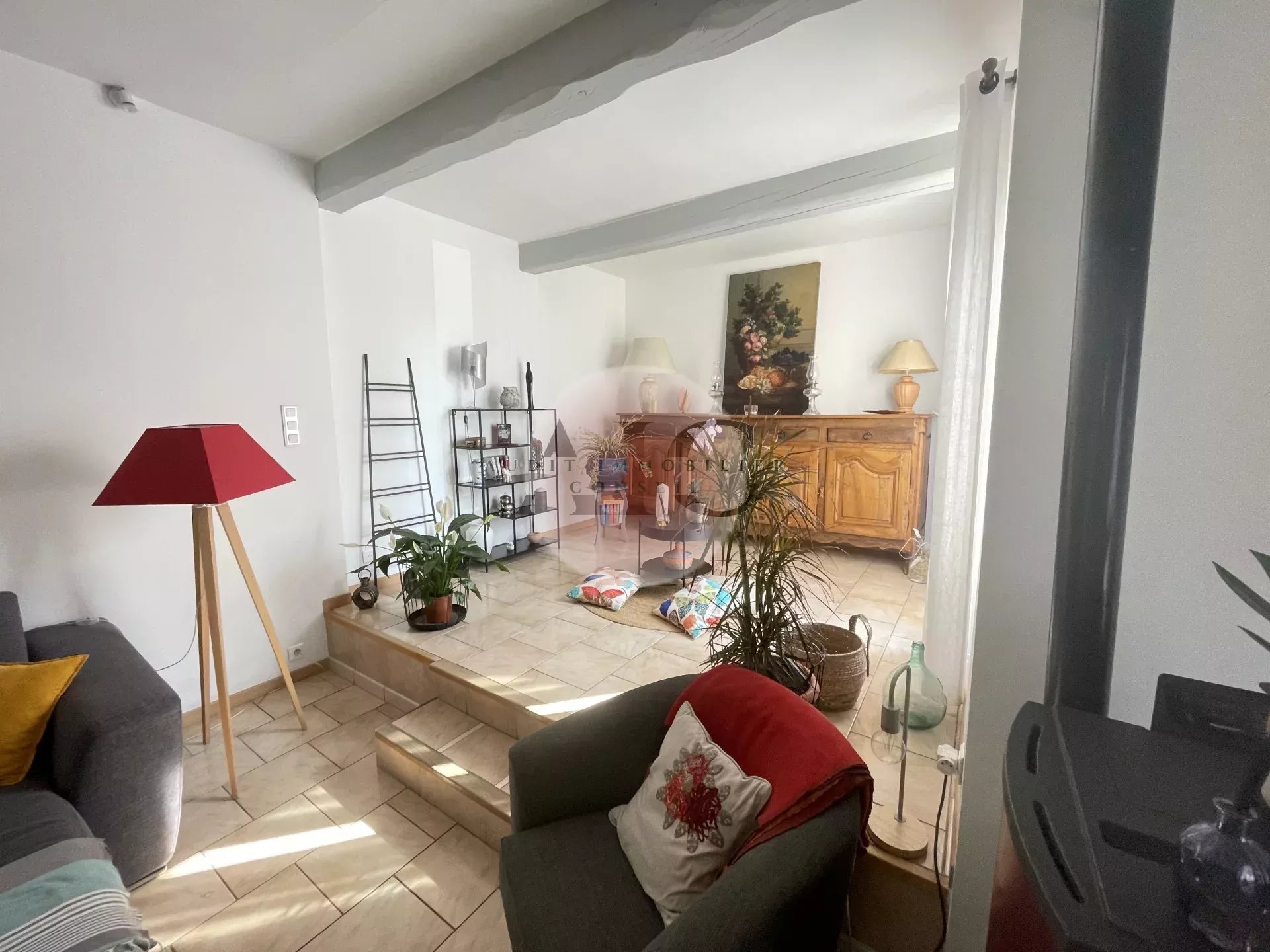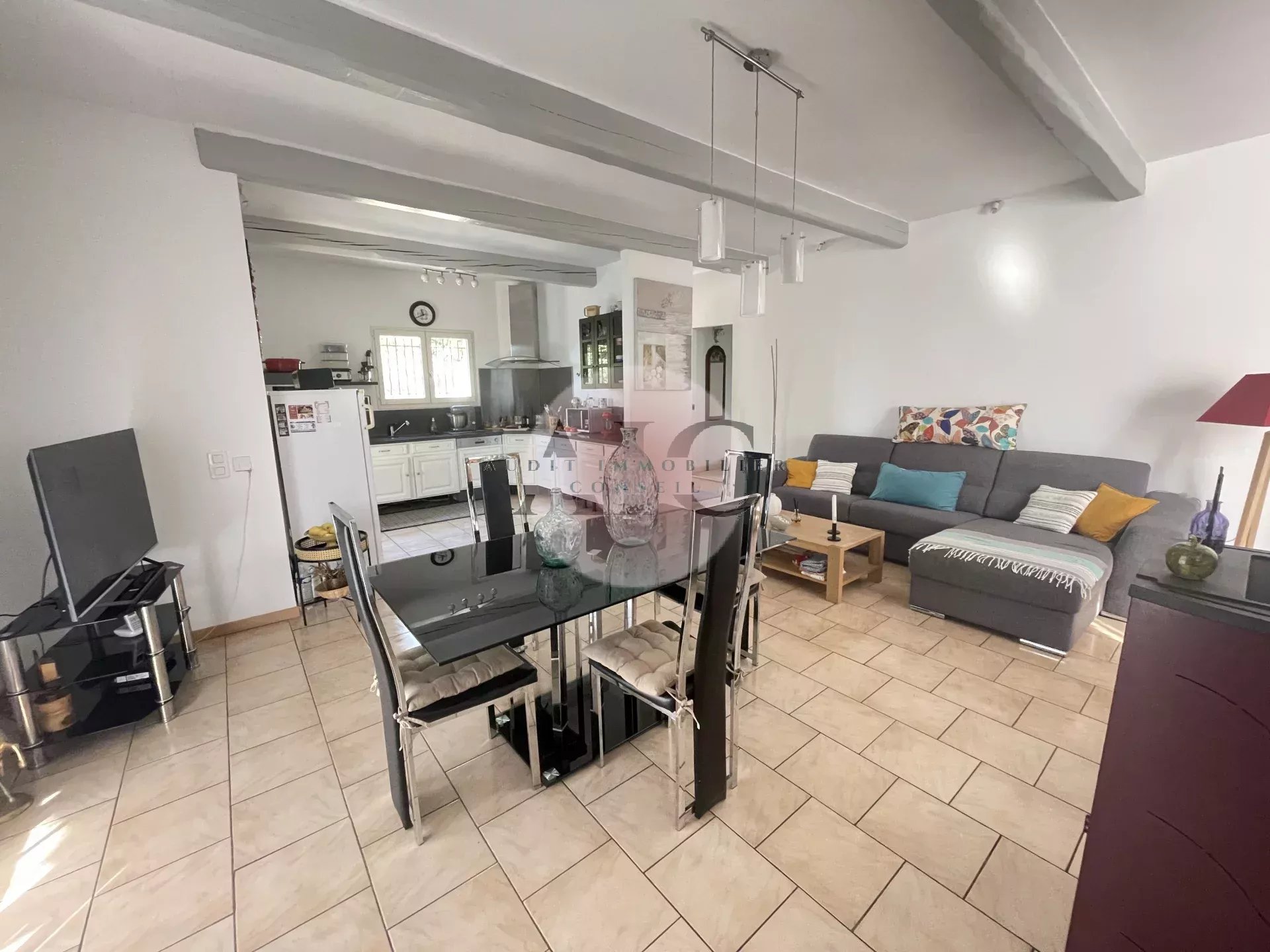 Ref. 1303 - A vendre charmante villa individuelle 3 pièces 84m² avec garage sur terrai 598m². Cette villa vous séduira par son exposition plein SUD et son jardin clos, paysagé, entretenu avec beaucoup de soin et de goût. La maison se compose d'un petit hall avec toilettes invités, un espace de vie lumineux comprenant séjour, salle à manger et cuisine américaine entièrement équipée. Une terrasse partiellement couverte, idéale pour profiter des repas en extérieur, un petit salon ouvert sur le jardin et une autre petite terrasse; En demi niveaux vous avez accès à deux chambres avec placards aménagés, une salle d'eau moderne avec douche à l'italienne; Le garage attenant comprend un espace buanderie aménagé; L'extérieur offre un beau terrain de 598m² soigneusement arrangé et parfaitement entretenu. Une villa clé en main, lumineuse, fonctionnelle et décorée avec gout.