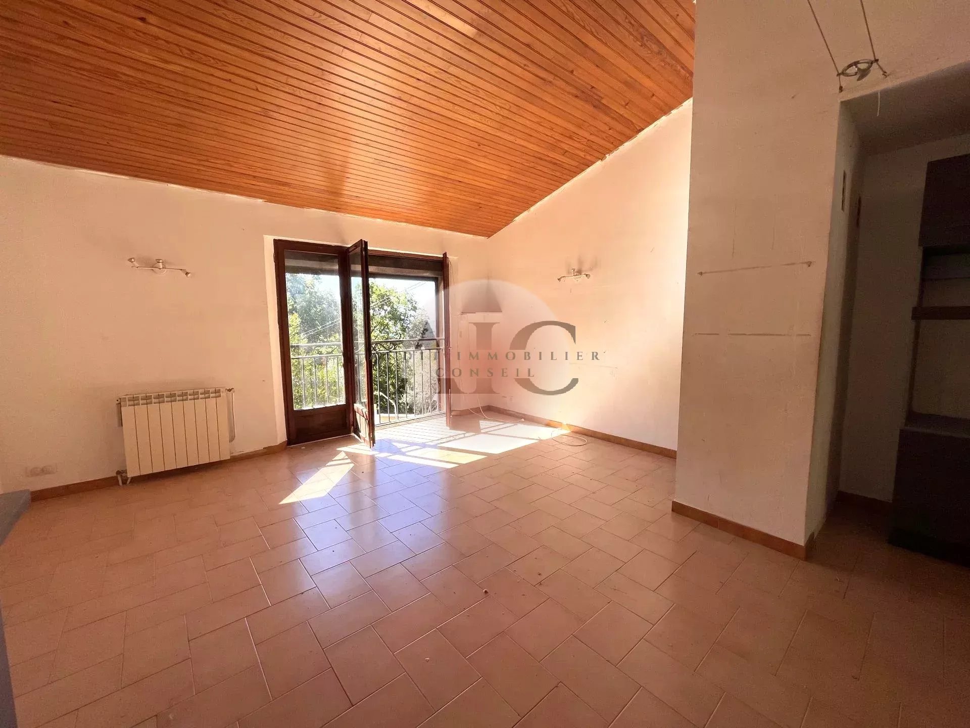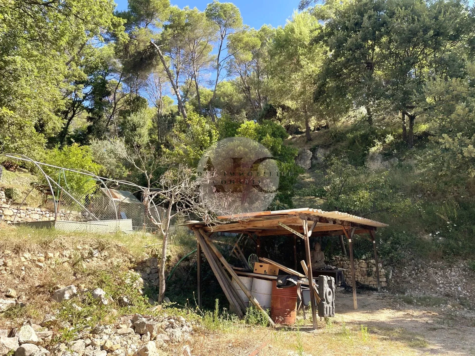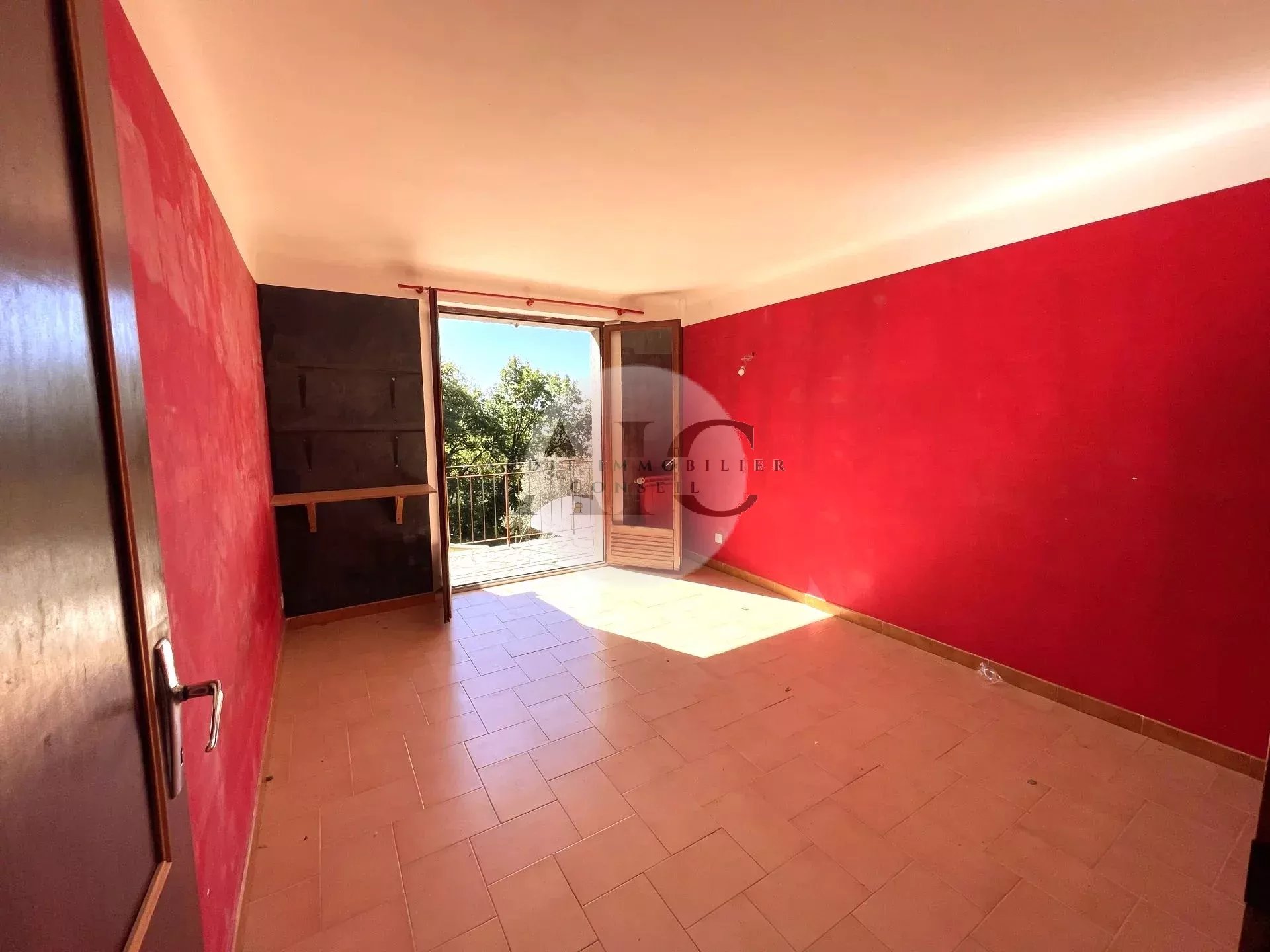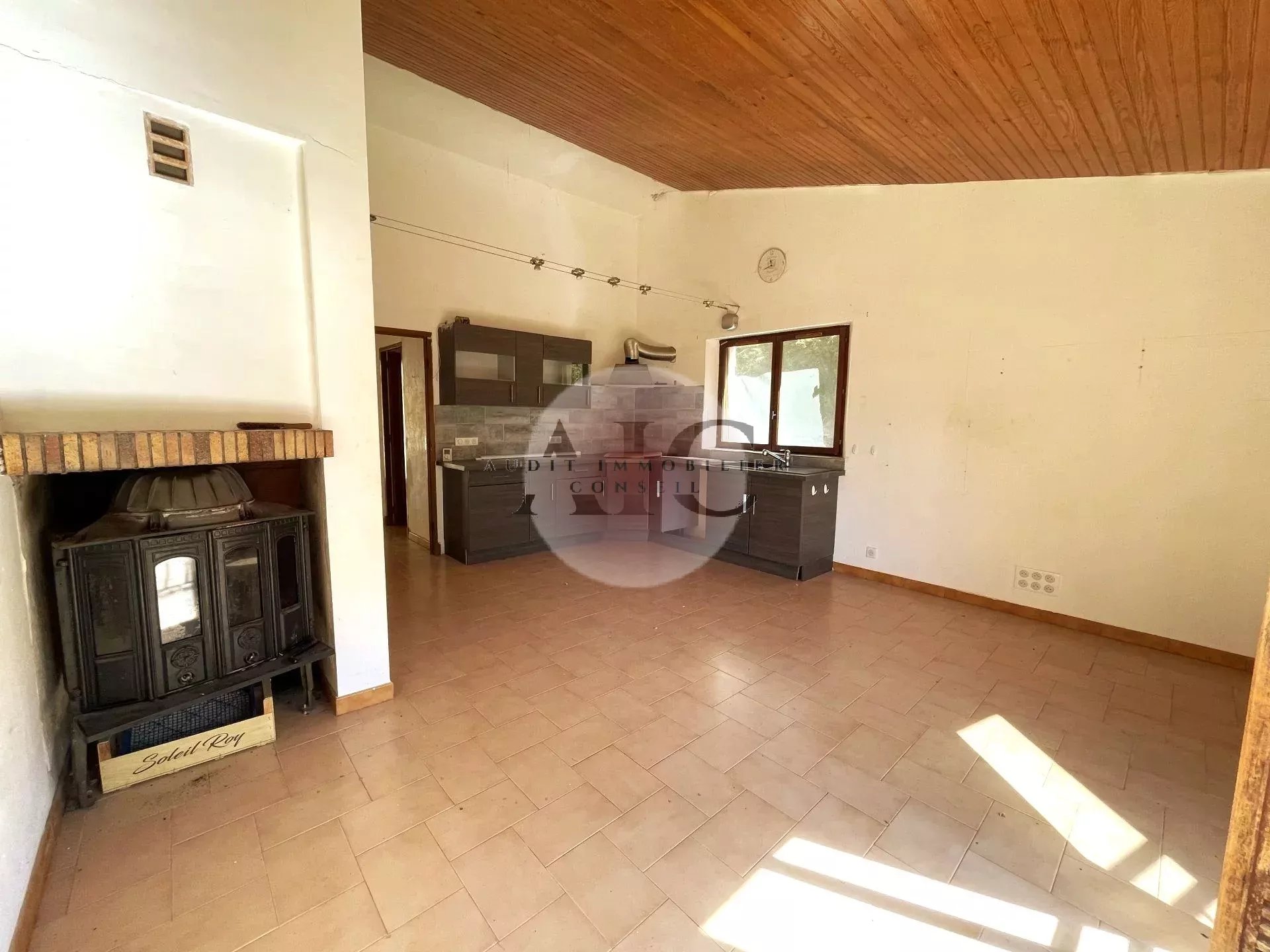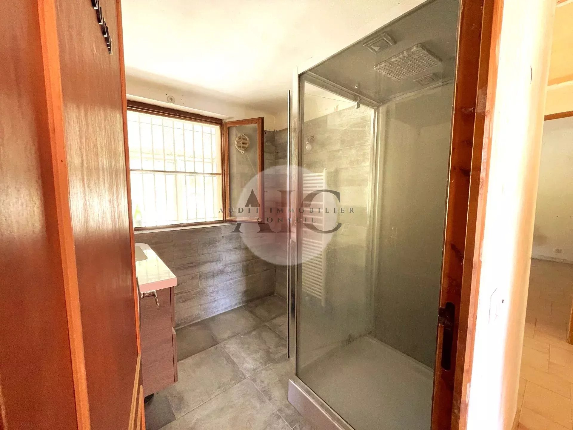 Ref. 1293 - A rénover, villa mitoyenne d'environ 80m² avec très belle vue dégagée, secteur au calme et verdoyant sur terrain, non clos de 2391m². Propriété familiale, séparée en deux lots. Distribuée en RDC d'un hall d'entrée, salon/séjour avec cuisine US aménagée, une chambre avec balcon, salle d'eau, wc indépendant. A l'étage une seconde chambre. A l'entrée côté nord, une terrasse avec une petite verrière. Piscine hors sol. Garage en sous-sol. Assainissement individuel à refaire.