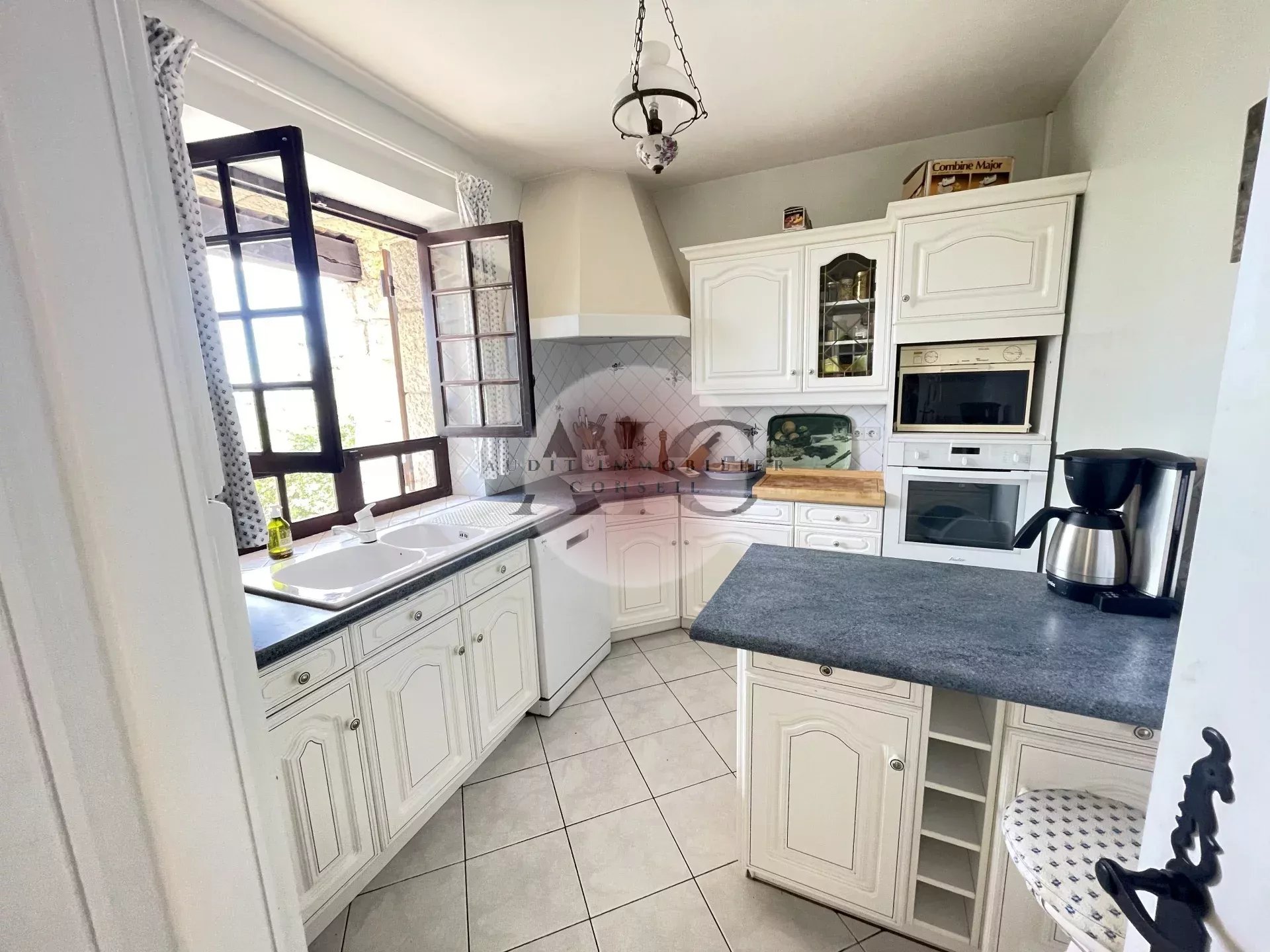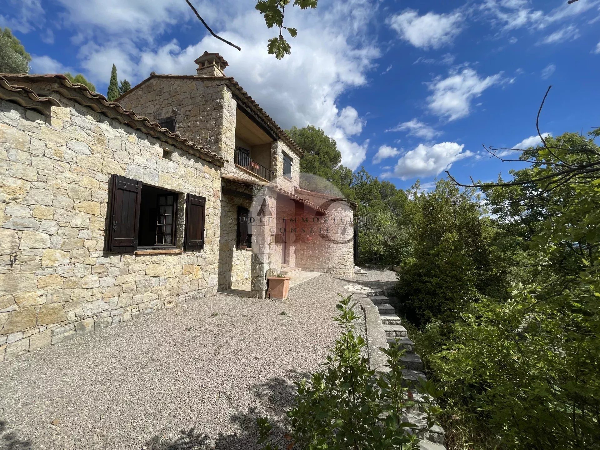 Ref. 1274 - Située en quartier résidentiel, proche de toutes commodités, cette superbe villa de caractère, en pierre de 144m², bénéficie d'une vue exceptionnelle et d'un charme unique, sur une parcelle en restanques de 1400m². Elle se compose en RDC d'un hall d'entrée avec placards, cellier, toilettes invités, salle d'eau, cuisine indépendante équipée, salon/séjour avec cheminée accès terrasse, une suite parentale avec salle de bains attenante, un bureau;